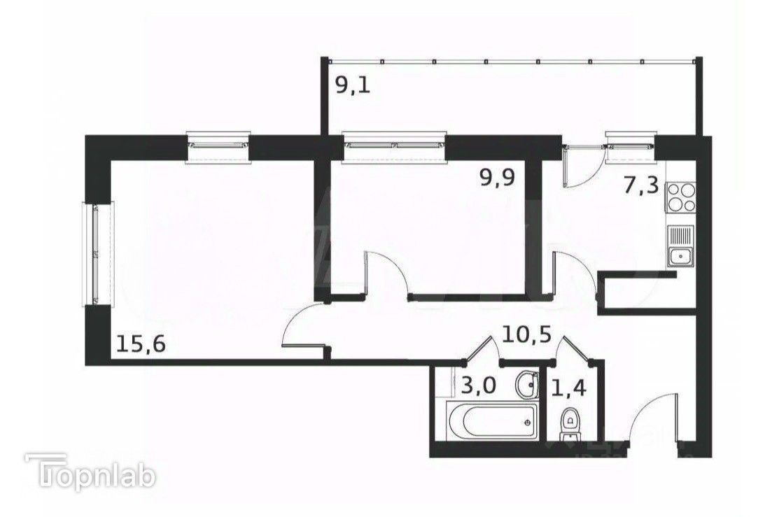 — Общая площадь: 56,8 м² 9 9 (с лоджией)