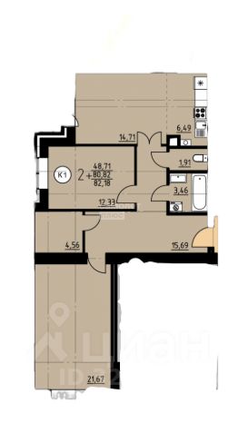 Арт. 114336317 Просторная двухкомнатная квартира в новостройке в центре Кузнецка.