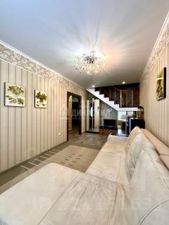 Описание: в квартире выполнен качественный современный ремонт: на полу линолеум; стены оклеены обоями светлых оттенков; потолки натяжные, высота 2,7 м; 2 санузла на 1 и 2 этажах в кафеле современного образца с новой сантехникой и мебелью; установлены металлическая входная дверь и качественные межкомнатные двери; теплые просторные лоджии застеклены пластиковыми окнами; установлены счетчики на горячую и холодную воду; в квартире установлен бойлер, кондиционер.