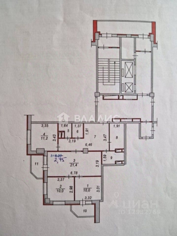 Высота потолков -2,8 метра.
