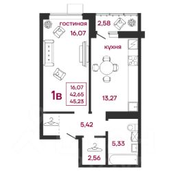 Современная и уютная 1-комнатная квартира с дизайнерским ремонтом в новом доме общей площадью 45,23 кв м. Просторная кухня-гостиная 13,26 кв м и спальня 16,07 кв м, с лоджией и гардеробной. Лоджия с витражным остеклением, что позволяет большому количеству света проникать в квартиру и наполняет её воздухом.