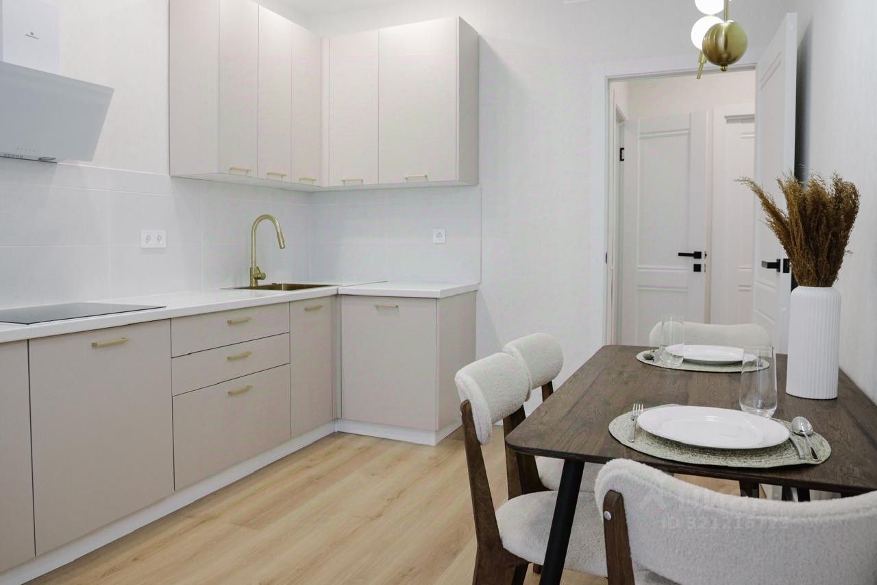 - Качественный ремонт: напольное покрытие — ламинат и керамогранит, выровненные стены со стильными светлыми обоями, качественные межкомнатные двери, натяжные потолки с зональной и многофункциональной подсветкой.