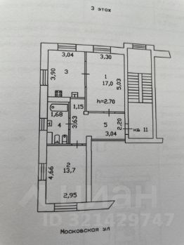 Общая площадь 59, 5 м2. Жилая - 31 м2. Кухня - 11.5 м2.