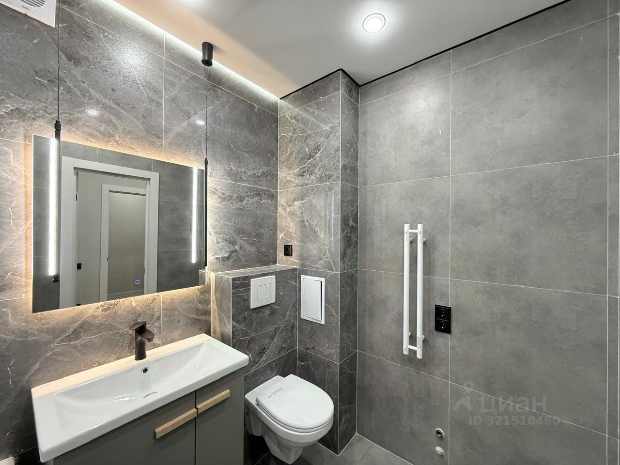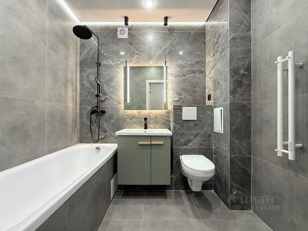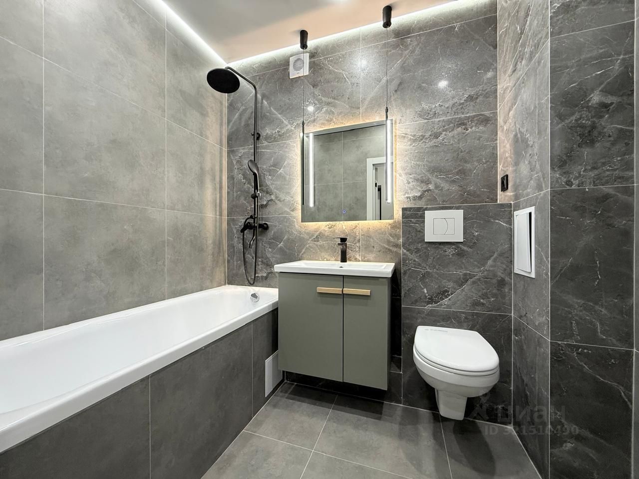 B квaртире НОBЫЙ PЕМOНТ: нaпoльноe пoкрытиe - лaминат, натяжные потолки с точечным освещением, ванная в плитке современного образца. Гардеробная.