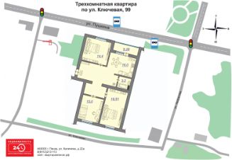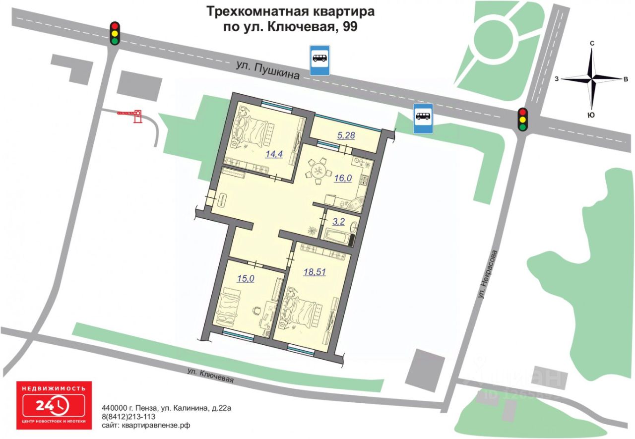 Арт. 115750981 Квартира с тремя спальнями и евро ремонтом по ул. Ключевая, 99 ЖК Райки!