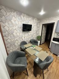 - кухня с современным кухонным гарнитуром и встроенной техникой;