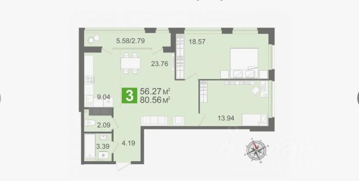 56,3 м²