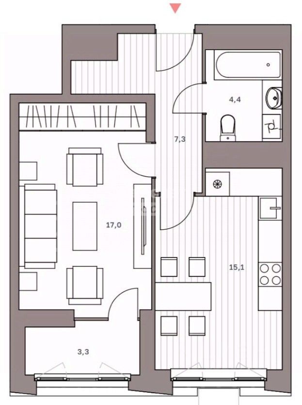 Кухня-гостиная 15,1 м2