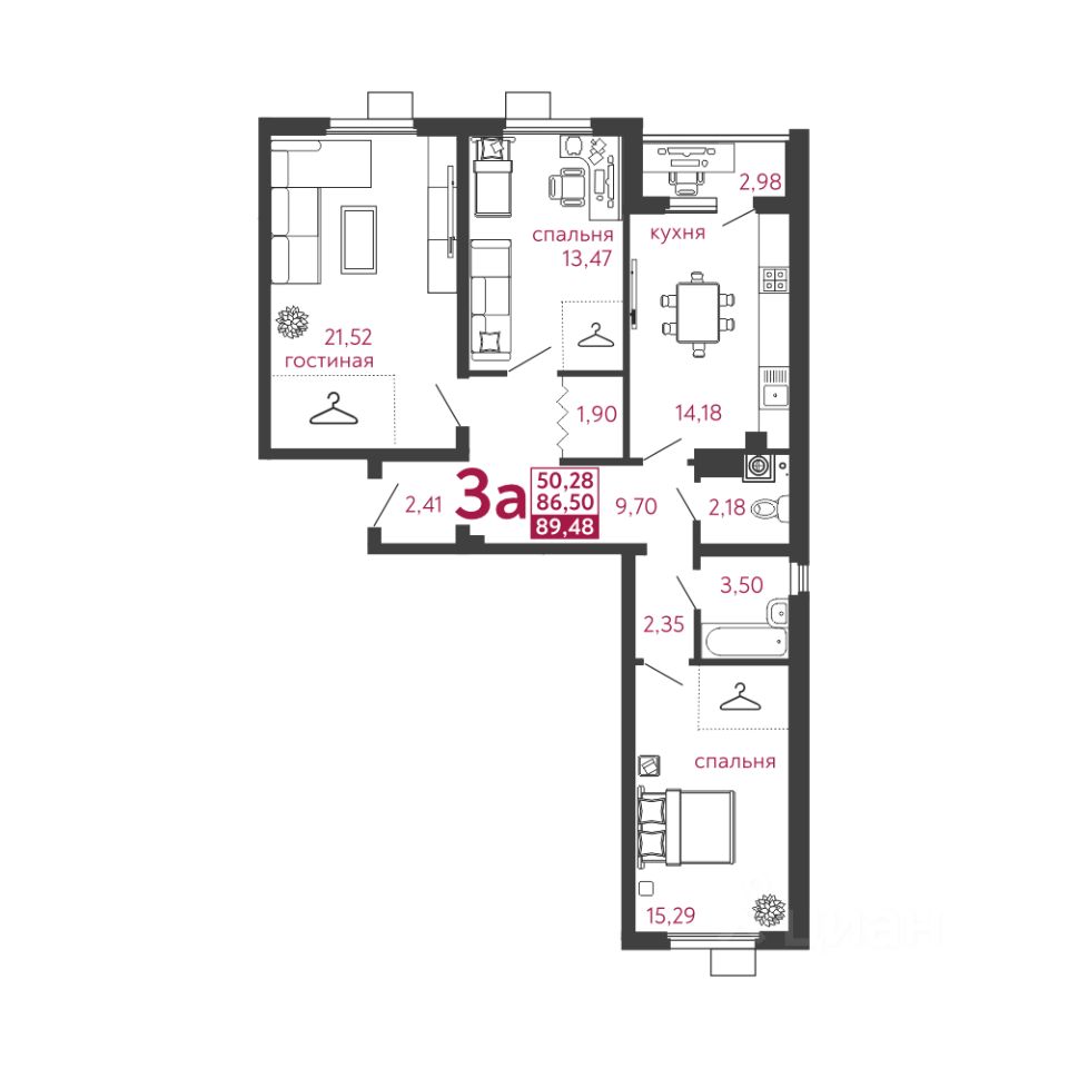 Общая площадь89,48 м²