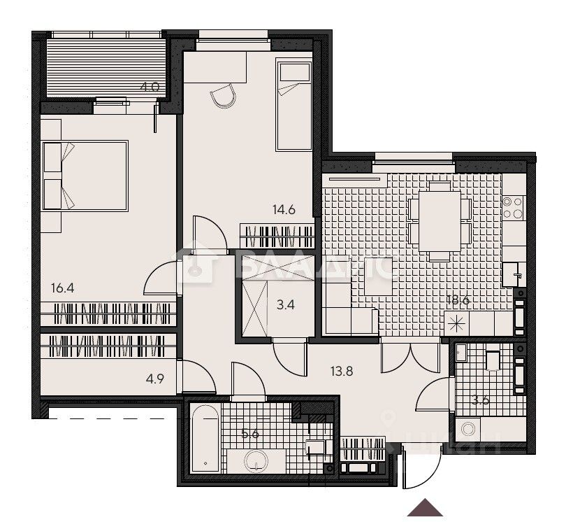 Квартира расположена на 9 этаже 14-этажной башни А4. Отличный вид на набережную.