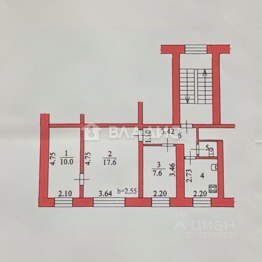 Квартира расположена на 2 этаже 2-этажного кирпичного дома.