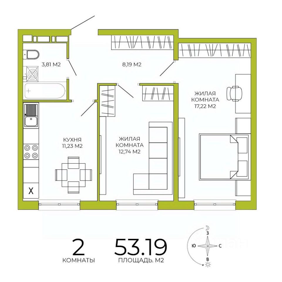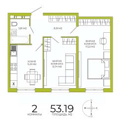 Продаётся 2-комнатная квартира в строящемся доме (дом 4 ), срок сдачи: IV-кв. 2026, общей площадью 53.19 кв.м., на 12 этаже. Дизайнерская отделка.