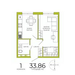 Продаётся 1-комнатная квартира в строящемся доме (дом 4 ), срок сдачи: IV-кв. 2026, общей площадью 33.86 кв.м., на 4 этаже. Дизайнерская отделка.