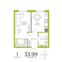 Продаётся 1-комнатная квартира в строящемся доме (дом 4 ), срок сдачи: IV-кв. 2026, общей площадью 33.99 кв.м., на 5 этаже. Дизайнерская отделка.