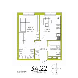 Продаётся 1-комнатная квартира в строящемся доме (дом 4 ), срок сдачи: IV-кв. 2026, общей площадью 34.22 кв.м., на 10 этаже. Дизайнерская отделка.