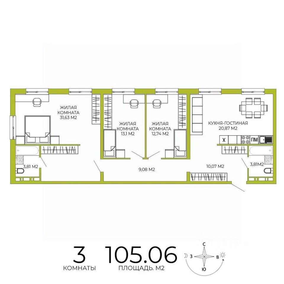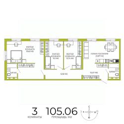 Продаётся 3-комнатная квартира в строящемся доме (дом 4 ), срок сдачи: IV-кв. 2026, общей площадью 105.06 кв.м., на 11 этаже. Дизайнерская отделка.