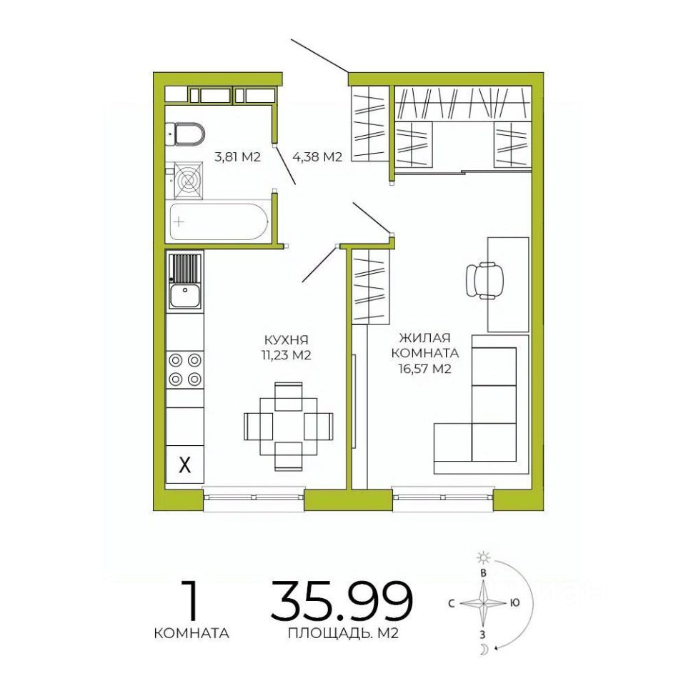 Продаётся 1-комнатная квартира в строящемся доме (дом 3), срок сдачи: IV-кв. 2026, общей площадью 35.99 кв.м., на 16 этаже. Дизайнерская отделка.