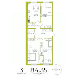 Продаётся 3-комнатная квартира в строящемся доме (дом 3), срок сдачи: IV-кв. 2026, общей площадью 84.35 кв.м., на 3 этаже. Дизайнерская отделка.