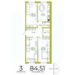 Продаётся 3-комнатная квартира в строящемся доме (дом 3), срок сдачи: IV-кв. 2026, общей площадью 84.51 кв.м., на 4 этаже. Дизайнерская отделка.