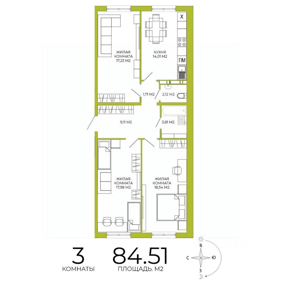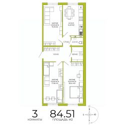 Продаётся 3-комнатная квартира в строящемся доме (дом 3), срок сдачи: IV-кв. 2026, общей площадью 84.51 кв.м., на 5 этаже. Дизайнерская отделка.