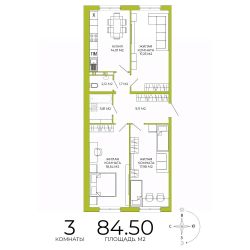 Продаётся 3-комнатная квартира в строящемся доме (дом 3), срок сдачи: IV-кв. 2026, общей площадью 84.5 кв.м., на 5 этаже. Дизайнерская отделка.