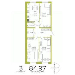 Продаётся 3-комнатная квартира в строящемся доме (дом 3), срок сдачи: IV-кв. 2026, общей площадью 84.97 кв.м., на 8 этаже. Дизайнерская отделка.