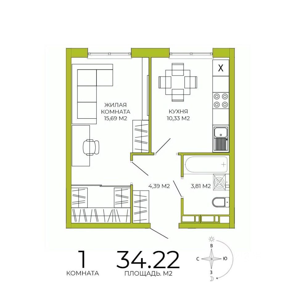 Общая площадь34,22 м²