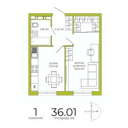 Продаётся 1-комнатная квартира в строящемся доме (дом 3), срок сдачи: IV-кв. 2026, общей площадью 36.01 кв.м., на 12 этаже. Дизайнерская отделка.