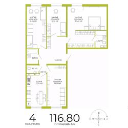 Продаётся 4-комнатная квартира в строящемся доме (дом 3), срок сдачи: IV-кв. 2026, общей площадью 116.8 кв.м., на 2 этаже. Дизайнерская отделка.