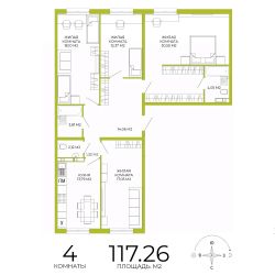 Продаётся 4-комнатная квартира в строящемся доме (дом 3), срок сдачи: IV-кв. 2026, общей площадью 117.26 кв.м., на 3 этаже. Дизайнерская отделка.