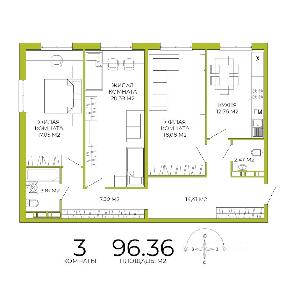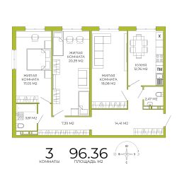 Продаётся 3-комнатная квартира в строящемся доме (дом 3), срок сдачи: IV-кв. 2026, общей площадью 96.36 кв.м., на 2 этаже. Дизайнерская отделка.