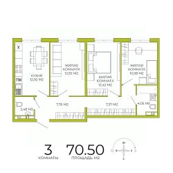 Продаётся 3-комнатная квартира в строящемся доме (дом 3), срок сдачи: IV-кв. 2026, общей площадью 70.5 кв.м., на 14 этаже. Дизайнерская отделка.