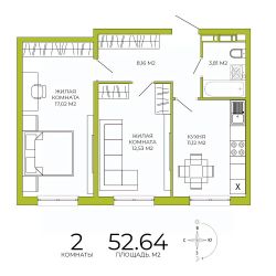 Продаётся 2-комнатная квартира в строящемся доме (дом 3), срок сдачи: IV-кв. 2026, общей площадью 52.64 кв.м., на 2 этаже. Дизайнерская отделка.