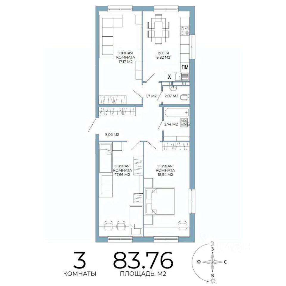 Продаётся 3-комнатная квартира в строящемся доме (дом 6), срок сдачи: IV-кв. 2026, общей площадью 83.76 кв.м., на 2 этаже. Дизайнерская отделка.