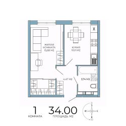 Продаётся 1-комнатная квартира в строящемся доме (дом 6), срок сдачи: IV-кв. 2026, общей площадью 34 кв.м., на 4 этаже. Дизайнерская отделка.