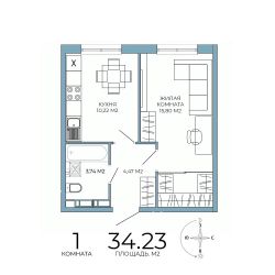 Продаётся 1-комнатная квартира в строящемся доме (дом 6), срок сдачи: IV-кв. 2026, общей площадью 34.23 кв.м., на 10 этаже. Дизайнерская отделка.