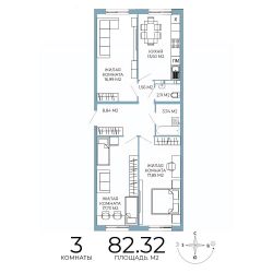 Продаётся 3-комнатная квартира в строящемся доме (дом 6), срок сдачи: IV-кв. 2026, общей площадью 82.32 кв.м., на 2 этаже. Дизайнерская отделка.