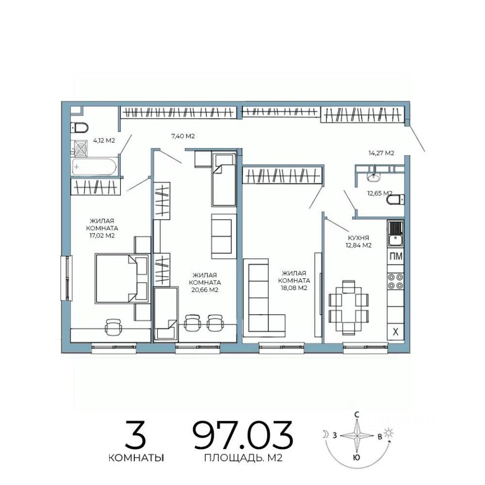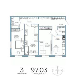 Продаётся 3-комнатная квартира в строящемся доме (дом 6), срок сдачи: IV-кв. 2026, общей площадью 97.03 кв.м., на 4 этаже. Дизайнерская отделка.