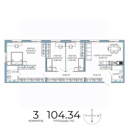 Продаётся 3-комнатная квартира в строящемся доме (дом 6), срок сдачи: IV-кв. 2026, общей площадью 104.34 кв.м., на 4 этаже. Дизайнерская отделка.