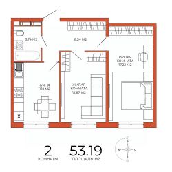 Продаётся 2-комнатная квартира в сданном доме (дом 8), срок сдачи: III-кв. 2025, общей площадью 53.19 кв.м., на 18 этаже. Дизайнерская отделка.