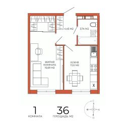 Продаётся 1-комнатная квартира в сданном доме (дом 8), срок сдачи: III-кв. 2025, общей площадью 36 кв.м., на 18 этаже. Дизайнерская отделка.