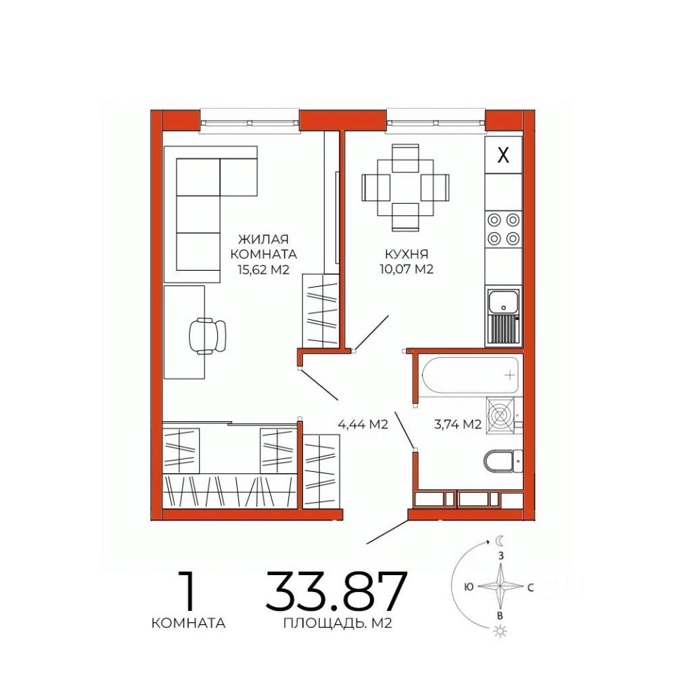 Продаётся 1-комнатная квартира в сданном доме (дом 8), срок сдачи: III-кв. 2025, общей площадью 33.87 кв.м., на 2 этаже. Дизайнерская отделка.