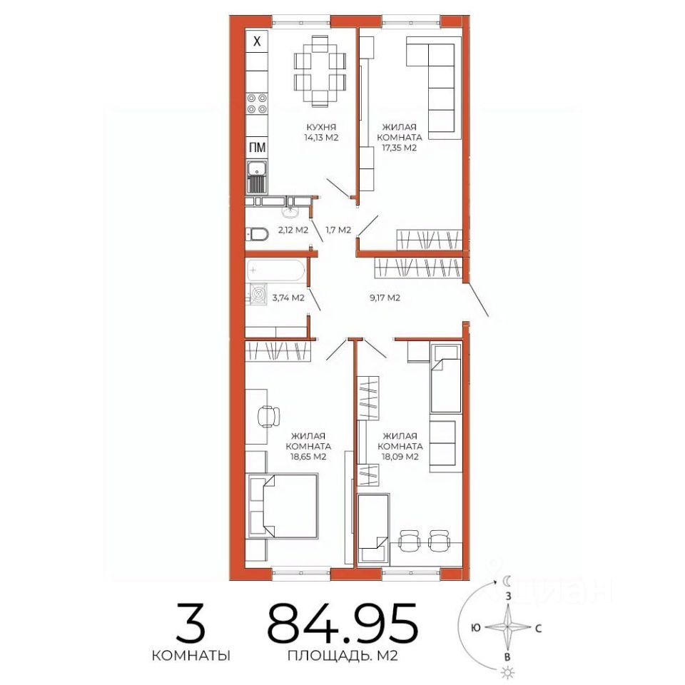 Продаётся 3-комнатная квартира в сданном доме (дом 8), срок сдачи: III-кв. 2025, общей площадью 84.95 кв.м., на 10 этаже. Дизайнерская отделка.