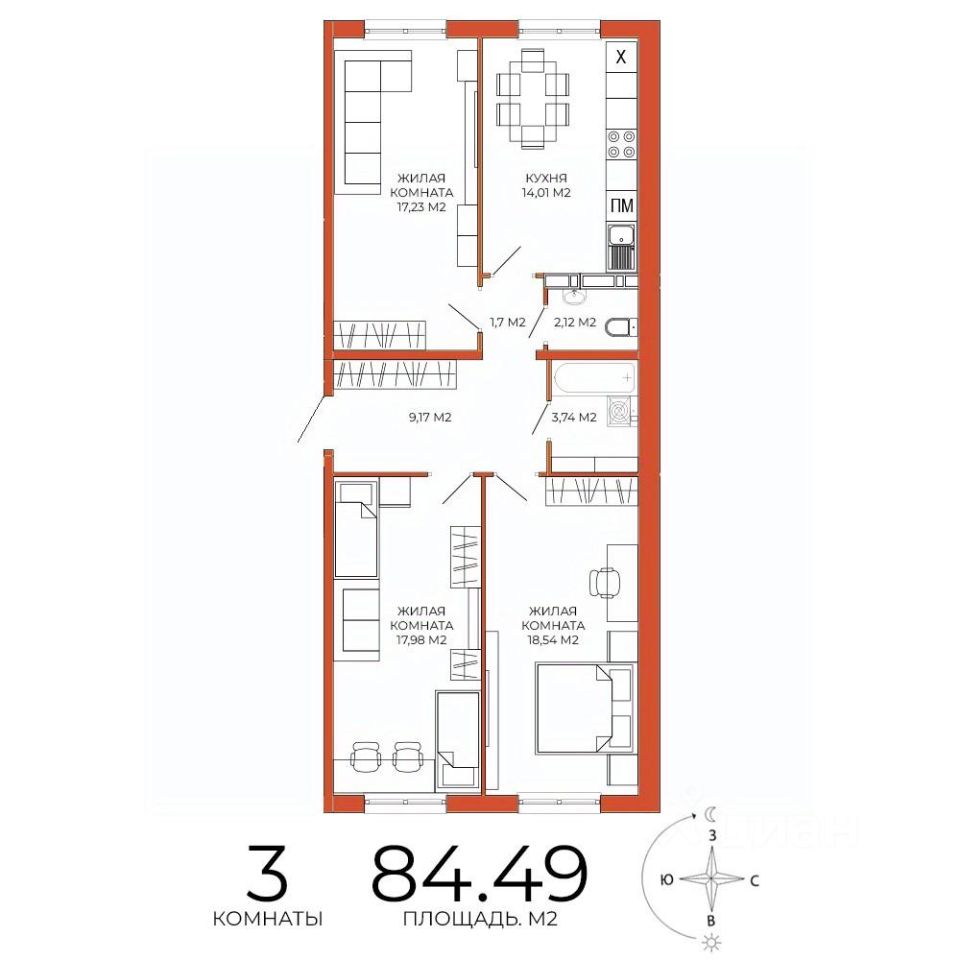 Продаётся 3-комнатная квартира в сданном доме (дом 8), срок сдачи: III-кв. 2025, общей площадью 84.49 кв.м., на 3 этаже. Дизайнерская отделка.