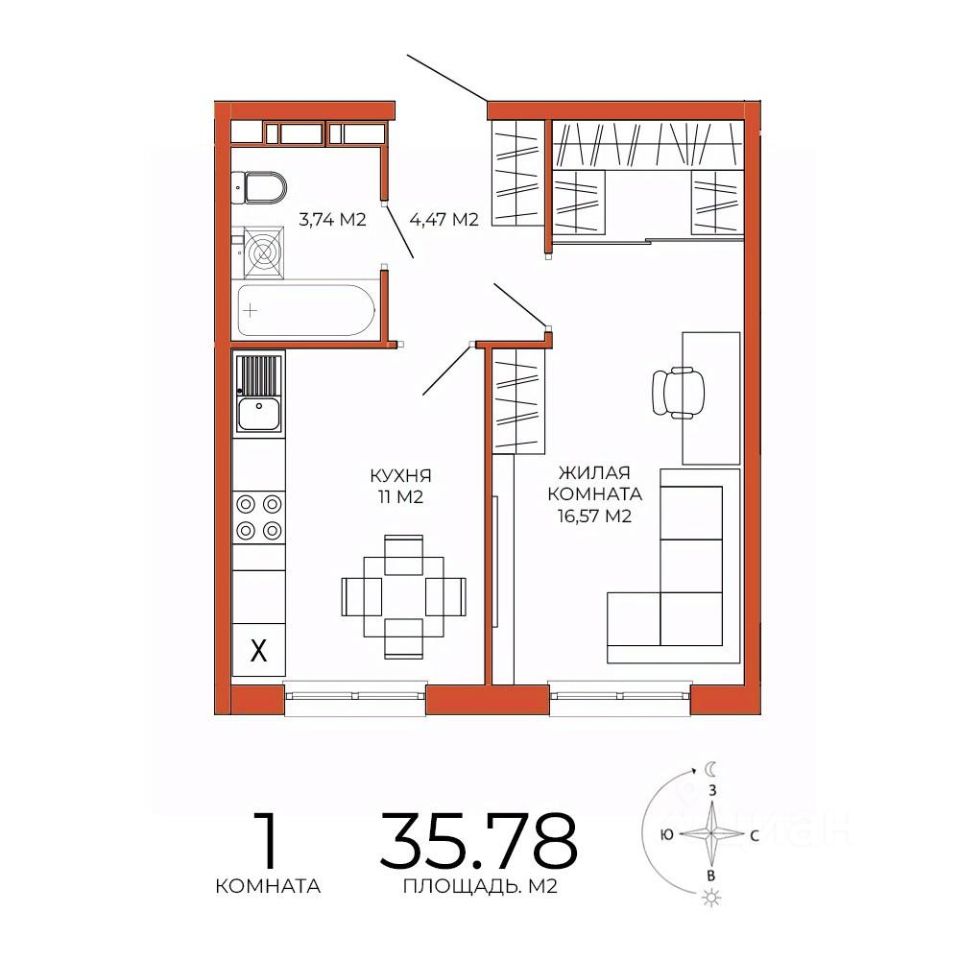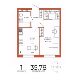 Продаётся 1-комнатная квартира в сданном доме (дом 8), срок сдачи: III-кв. 2025, общей площадью 35.78 кв.м., на 3 этаже. Дизайнерская отделка.