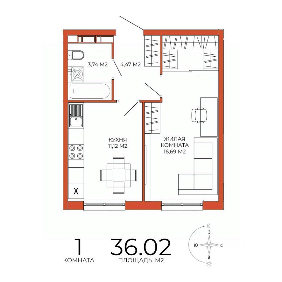 Продаётся 1-комнатная квартира в сданном доме (дом 8), срок сдачи: III-кв. 2025, общей площадью 36.02 кв.м., на 7 этаже. Дизайнерская отделка.