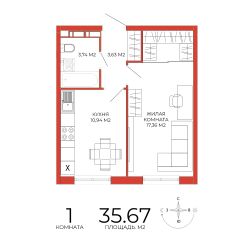 Продаётся 1-комнатная квартира в сданном доме (дом 8), срок сдачи: III-кв. 2025, общей площадью 35.67 кв.м., на 3 этаже. Дизайнерская отделка.