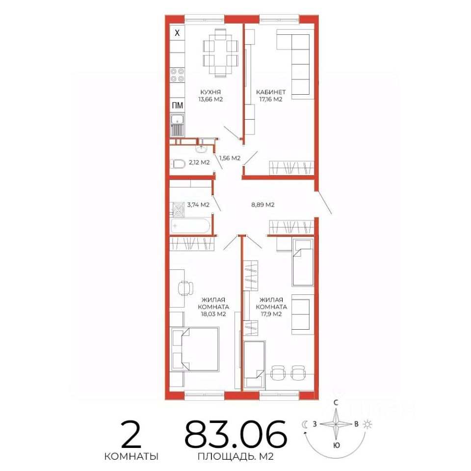 Продаётся 2-комнатная квартира в сданном доме (дом 8), срок сдачи: III-кв. 2025, общей площадью 83.06 кв.м., на 7 этаже. Дизайнерская отделка.