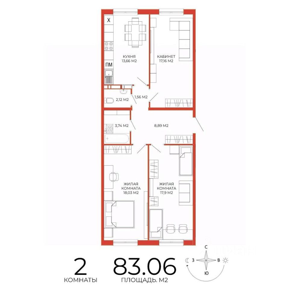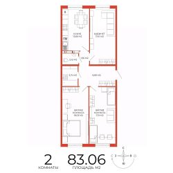 Продаётся 2-комнатная квартира в сданном доме (дом 8), срок сдачи: III-кв. 2025, общей площадью 83.06 кв.м., на 13 этаже. Дизайнерская отделка.