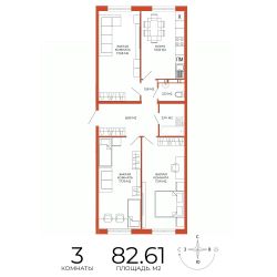 Продаётся 3-комнатная квартира в сданном доме (дом 8), срок сдачи: III-кв. 2025, общей площадью 82.61 кв.м., на 4 этаже. Дизайнерская отделка.